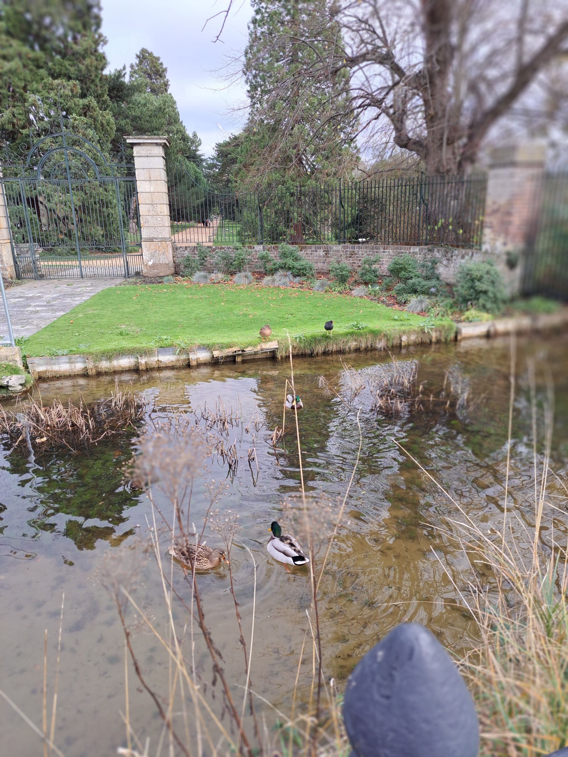 I had a very healthy lunch in the Fitzwilliam café – a chocolate and hazelnut shortbread, delicious. And then because it was a nice day I decided to walk to Shaftesbury Road to meet Gerard, who was working there, although I was carrying three bags. I really enjoyed the walk, pausing to look at the house where Millicent Garrett Fawcett lived, passing the Botanic Garden, looking at the ducks on the stream which rolled quietly along beside the pavement. It was bitterly cold, and sunny.